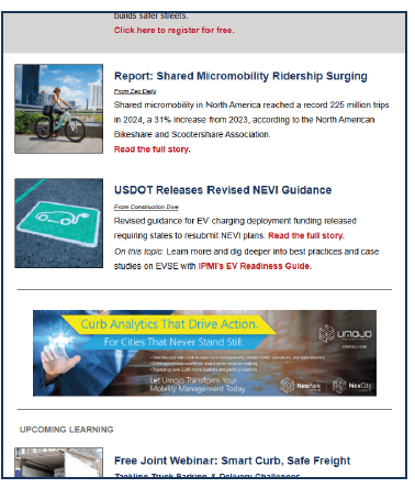 If you would like to purchase 3 or more placements in the E-Newsletter or would like to also place on other platforms we offer, contact taltman@parking-mobility.org to create a personalized bundle rated package for you!